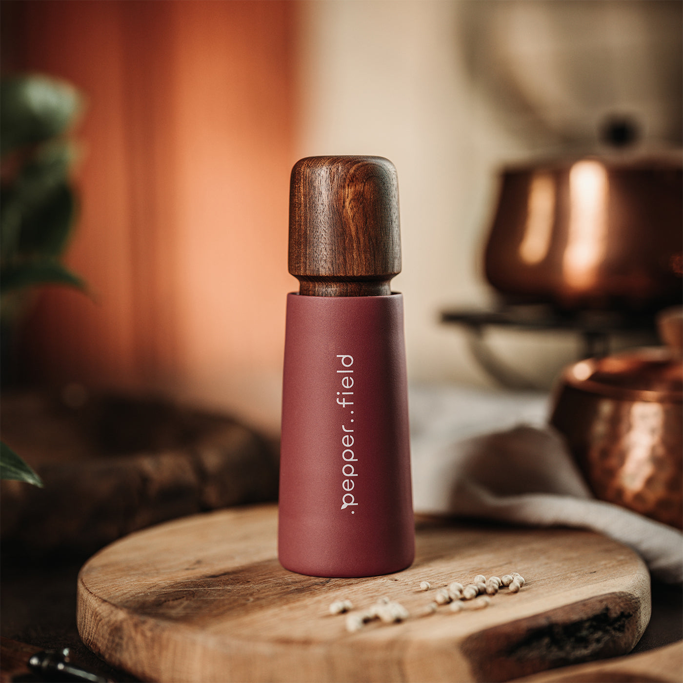 Překrásný bordeaux mlýnek s hlavou z ořechového dřeva má povrchovou úpravu, která zajišťuje skvělou omyvatelnost, pevně sedí v ruce a má záruku 25 let na mechanismus. Prostě dokonalý produkt, na který jsme právem hrdí a který nenajdete u žádné jiné značky.